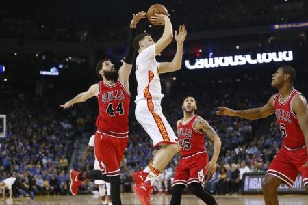 احتفل كلاي طومسون بعيد ميلاده 27 بإحراز ست رميات ثلاثية و28 نقطة قاد بها فريقه جولدن ستيت وريورز للفوز 123-92 على ضيفه شيكاجو بولز في دوري كرة السلة الأمريكي للمحترفين يوم الأربعاء.