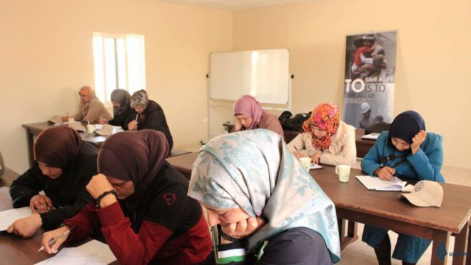 عندما بدأت عملي التطوعي مع الدفاع المدني السوري، دخلت في دورات تدريبية للاستجابة الطبية الفعالة في حالات الطوارئ، كما تلقيت التدريب مع 12 عضواً من الإناث من الدفاع المدني، في قسم التوليد. وتعد الولادة من أخطر الحالات بالنسبة للنساء؛ ذلك أن معظم المراكز الصحية والمستشفيات في سوريا قد دُمرت ولم يتبقَّ سوى عدد قليل من المراكز للنساء والأطفال، فضلاً عن هروب معظم العاملين في المجال الطبي خوفاً من القصف أو التعرض إلى الاعتقال على أيدي الأجهزة الامنية. ونتيجة لذلك، فقدت العديد من النساء حياتهن وحياة أطفالهن الرضع.