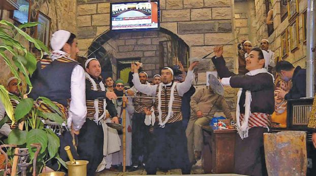 وما أن تتعمق في حواري إربد، تأخذك أصوات الطبول إلى «حمام الساحة» الذي تتمركز فيه فرقة العراضة الدمشقية لتمارس طقوساً فنية تعود إلى مئات السنين ووسط مكان يعبق برائحة الحارة الشامية كما بقيت عامرة في ذاكرتهم.