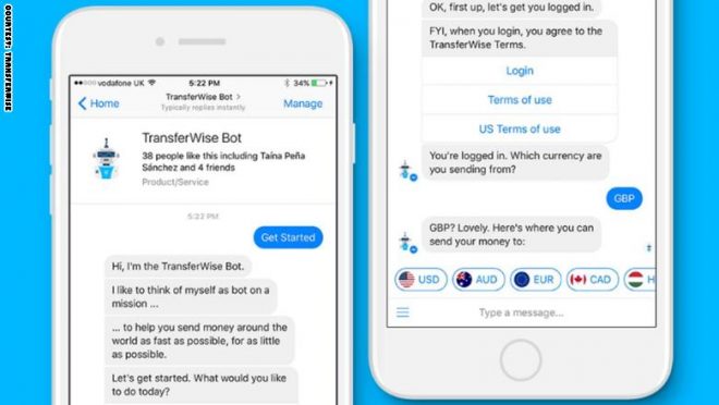 أطلقت الشركة الناشئة لتحويل الأموال “TransferWise” روبوت دردشة أو “chatbot” جديد يتيح لمستخدمي فيسبوك نقل الأموال إلى الخارج باستخدام خدمة التراسل على المنصة الاجتماعية.