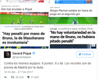 وبعد نهاية المباراة غرّد “بيكيه” منتقدًا التحكيم قائلًا “أمام نفس الفرق، حققوا 8 نقاط وخسرنا 8 نقاط ، هذه الصور من صحف مدريد لمن يشكك”.