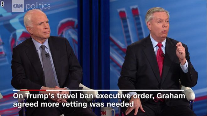 انتقد السيناتوران الجمهوريان، ليندسي غراهام وجون ماكين، سياسة الرئيس الأمريكي الجديد، دونالد ترامب فيما يتعلق بملفات كالعراق وسوريا وموقفه من عملية اليمن.