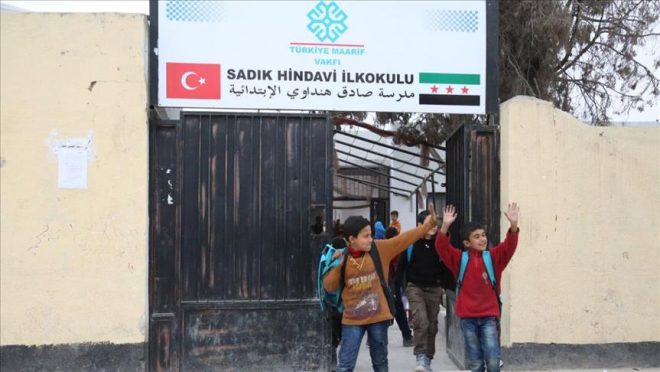 وتهدف مدرسة “صادق هنداوي” الابتدائية في جرابلس، بعد أن فتحت أبوابها أمام التلاميذ قبل حوالي 5 أشهر، لتحقيق نجاحات كبيرة في التعليم من خلال الدعم المادي والمعنوي الذي يقدمه لها الوقف التركي.