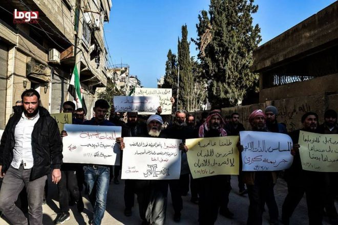 وأثار هذا المقال رد فعل غاضب من السكّان في الغوطة الشرقية ومناطق أخرى، حيث شهد سلسلة ردود غاضب على المواقع الزرقاء.