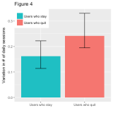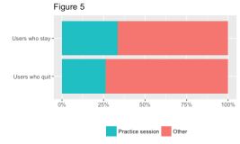 العادة الثانية التي يتبعها المتعلمون الناجحون هي عدم الإسراف. فهم يقومون بتوزيع الدراسة على عدد من الجلسات القصيرة يوميًا. يوضح الشكل رقم 4 الانحراف المعياري النسبي بالنسبة لعدد الجلسات اليومية. وكما يظهر، فإن هذا الانحراف منخفض لدى المتعلمين الناجحين، وهو ما يعني أنهم يأخذون عددًا من الدروس وجلسات التدريب كل يوم. وكلما ارتفعت نسبة الانحراف – يؤكد التقرير – فإن هذا يعني أن المستخدم يدخل على الموقع كل فترة قصيرة لأخذ لمحة سريعة، ومثل هؤلاء على الأرجح يستسلمون في نهاية المطاف.