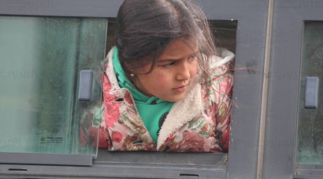 باصاتٌ خضراء اللون، ووجوهٌ بائسة تلملم لحظاتها الأخيرة قبل أن تغادر المكان الذي تنتمي إليه، ربمّا إلى غير رجعة، لكن هذه المشهد ليس من حيفا أيام النكسة، وإنّما من سورية أيام الثورة، في لحظة تهجير سكّان حي الوعر، بعد أن خرّت قوى المدنيين داخله تحت وطأة القصف العنيف والحصار الشديد، لينتهي بهم المطاف بالخروج على دفعات نحو الشمال السوري، تاركين خلفهم ذكرياتهم أو ما بقي منها داخل الحي المكلوم.
