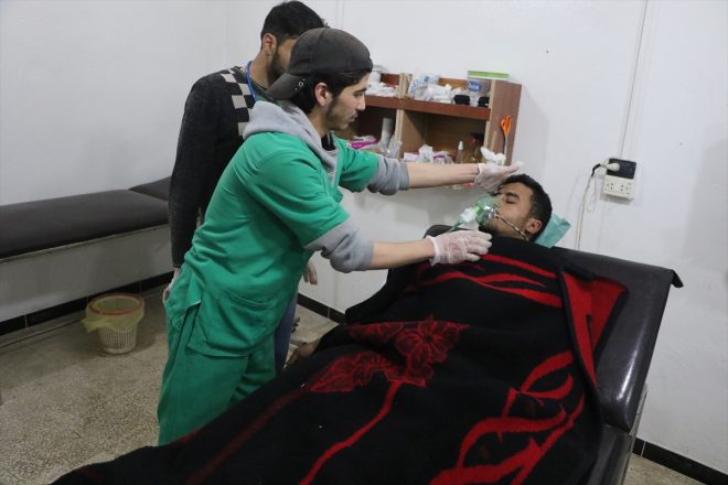 وأضاف أن قصفاً مماثلاً طاول مدينة اللطامنة القريبة، أسفر عن إصابة أكثر من عشرة مدنيين آخرين بحالات اختناق أيضاً.