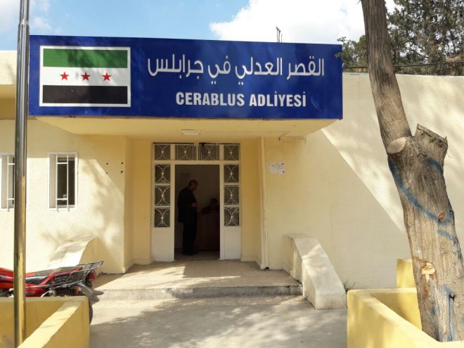 وتمثلت المرحلة الأولى بإنشاء مجمع جرابلس القضائي منذ نحو شهر تقريباً والذي يديره حالياً أربعة قضاة كانوا قد انشقوا سابقاً عن النظام و استقروا في تركيا حسبما يوضح “حمد حمد” عضو محلي جرابلس لـ صدى الشام، و قامت وزارة العدل التركية بتعيين هؤلاء القضاة بشكل مباشر حيث يواظبون منذ عدة أسابيع على العمل داخل المجمع.