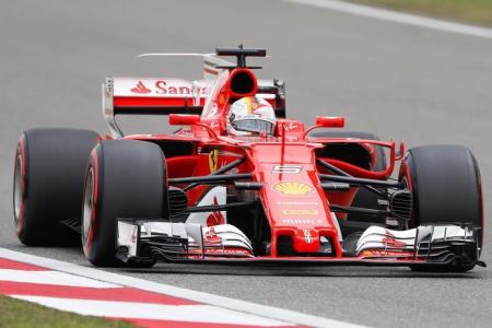 الألماني سيباستيان فيتل سائق فيراري خلال جولة التجارب الحرة الثالثة على حلبة شنغهاي يوم السبت. تصوير: آلي سونج - رويترز