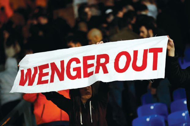 وواصل أنصار أرسنال رفع شعارات تطالب برحيل فينغر خلال المباراة ضد كريستال بالاس.