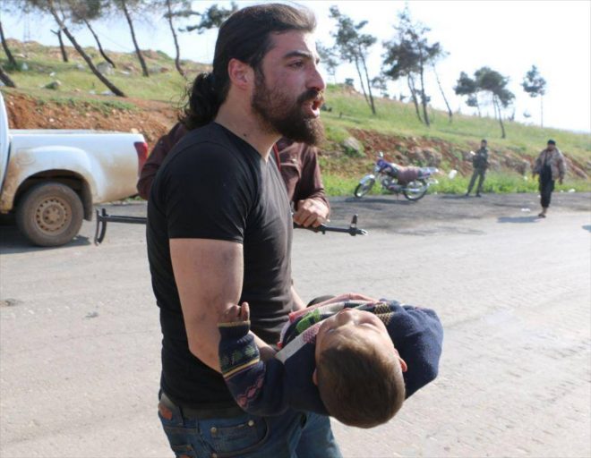 أبو الحسام ظهر في صورةٍ وهو يركض حاملاً طفلين مصابين من الفوعة، وكانت الدماء تغطي وجهيهما جراء الانفجار، وللمفارقة فإن أبو الحسام ذاته ينحدر من بلدة بنّش الملاصقة للفوعة، والتي ذاقت الويلات من الهجمات المدفعية والصاروخية التي كانت تشنّها الميليشيات الطائفية على قريته.