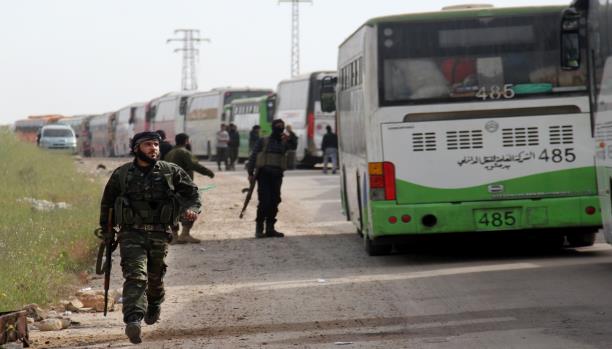 هذه التطورات السياسية تترافق مع استكمال تنفيذ المرحلة الأولى من اتفاق “المدن الأربع”، والتي نجح خلالها النظام السوري بإتمام عملية إفراغ معظم مناطق محيط دمشق من مسلحي المعارضة وذويهم، ولم يبقَ أمامه سوى منطقة الغوطة الشرقية مع امتداداتها في شرق العاصمة ومنطقة جنوب دمشق التي يسيطر على معظمها تنظيم “الدولة الإسلامية” (داعش) وتُعتبر ساقطة عسكرياً، وإن كانت قوات النظام تمتنع عن اقتحامها حتى الآن لأنها لا تشكل أية خطورة عليها من الناحية العسكرية، إضافة إلى رغبة النظام في دوام الوضع الراهن بالنسبة لسكان هذه المناطق. وفي إطار اتفاق “المدن الأربع” جرت يوم أمس الجمعة عملية إخلاء الدفعة الثانية من سكان ومقاتلي كفريا، الفوعة، الزبداني، مضايا، ووصلت إلى مناطق سيطرة قوات المعارضة في محافظة إدلب الحافلات التي تقل ما تبقّى من سكان ومقاتلي مدينتي الزبداني ومضايا وبعض بلدات القلمون، مقابل وصول دفعة جديدة من سكان بلدتي كفريا والفوعة المواليتين للنظام من إدلب إلى مناطق سيطرة قوات النظام في حلب.