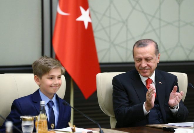 وكما درجت العادة لدى السياسيين الأتراك تنازل أردوغان عن مقامه الرئاسي، للطفل “يغيت ترك” الذي أجاب عن أبرز أسئلة الصحفيين، بصفته رئيسا للجمهورية التركية خلال فترة جلوسه على الكرسي.