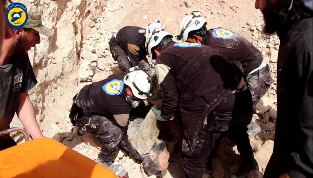 انتشال العالقين من تحت الأنقاض (موقع الدفاع المدني بإدلب)