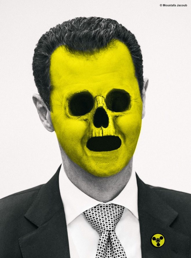 لكن الأمر لم يتوقف هنا فكان هناك ما هو أكثر حدة وتهكم على ما قاله الأسد، انطلاقاً من فكرة هشاشة الوضع الذي يعانيه نظام الأسد، ما يجعله كمن يملك بيتاً من زجاج ويرمي الناس بالحجارة.