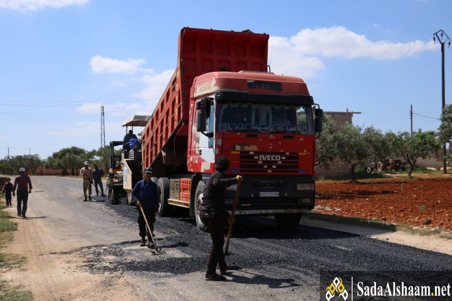 تزفيت طرقات من قبل هيئة إدارة الخدمات بمحافظة ادلب، بالتعاون مع معبر باب الهوى