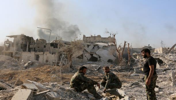 ميدانياً، قصف تنظيم “داعش”، صباح أمس، منطقة خاضعة لسيطرة النظام شرق حماة، فيما أعلن النظام سيطرته على مواقع في ريف حمص الشرقي، كان قد انتزعها منه مقاتلو التنظيم في وقت سابق. واستهدف “داعش” قرية المسعودية الخاضعة لسيطرة النظام، في ريف حماة الشرقي، بقذائف المدفعية والصواريخ، واقتصرت الأضرار على المادية. وفي غضون ذلك، ذكر تلفزيون النظام السوري أنّ “الجيش والقوات الرديفة استعادا السيطرة على قرية ومنطقة الباردة شرق القريتين، بريف حمص الشرقي، بعد اشتباكات مع داعش”، مشيراً إلى أنّ “العشرات من مقاتلي التنظيم سقطوا بين قتيل وجريح”. وأوضح أنّ “قوات النظام تقدّمت شرق القرية، وأحكمت السيطرة على جبل زقاقية خليل، وسيطرت نارياً على قرية البصيري جنوبي الباردة بنحو ثمانية كيلومترات. كما تقدّمت قوات النظام في منطقة الصوانة جنوب مدينة تدمر شرقاً، على خلفية اشتباكات مع مسلحي داعش”.