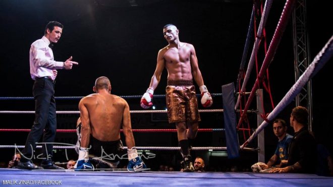 نال الملاكم الليبي عبد المالك الزناد حزام “wif”، بعد فوزه بالضربة القاضية على البطل البريطاني جيرمين أسارا، المقلب بـ”صاحب القبضة الحديدية”.