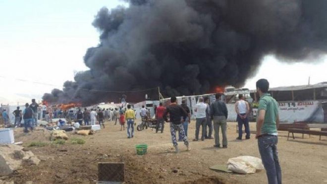 اندلع حريق كبير، ظهر اليوم الأحد، في مخيم للاجئين السوريين ببلدة قب الياس في البقاع اللبناني.