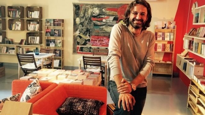 وتصطف على الجدران برتقالية اللون رفوف للكتب تحتوي مئات المؤلفات بالعربية ومجموعات من الكتب التركية والإنجليزية. كما تزيّن تلك الجدران أعمال فنية غير مؤطرة لفنانين سوريين مثل “حسام علوم” و”عمران يونس”. وهناك أيضاً بار صغير حيث تستطيع أن تقدم لنفسك فيه كوباً من الشاي بالإضافة إلى وجود مقاعد مريحة تغوص فيها بينما تقرأ أي كتاب قد اخترته.