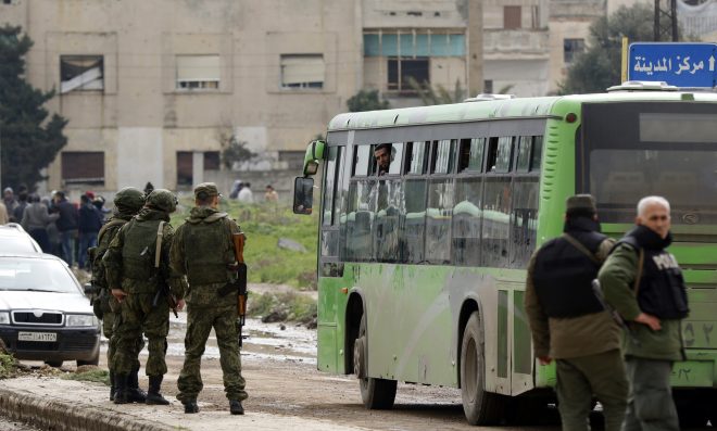 تسلّم نظام الأسد اليوم الأحد، دفعةً من مهجّري حي الوعر الذين عادوا إلى الحي قادمين من مدينة جرابلس بريف حلب، بعد أشهرٍ من تهجيرهم إليها من قبل النظام، بموجب اتفاق تمّ بين فصائل المعارضة وروسيا.