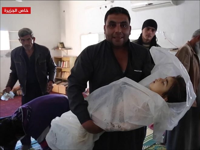 واتهمت المعارضة السورية ودول غربية النظام السوري بشن الهجوم، الأمر الذي نفته دمشق وحليفتها موسكو.