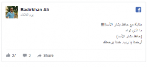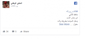 أما محمد فكتب “الكذب وراثة، حافظ بن بشار الأسد، يدخل السياسة بطريقة والده، أن الحرب في سورية ليست حرباً أهلية، إنما هي حربٌ يخوضها النظام من أجل استعادة الأراضي المسلوبة”.