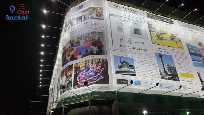 وكان آخر تلك “الصرعات” وضع صحيفة إعلانية ضخمة على واجهة فندق “سمير أميس” وسط العاصمة السورية دمشق.