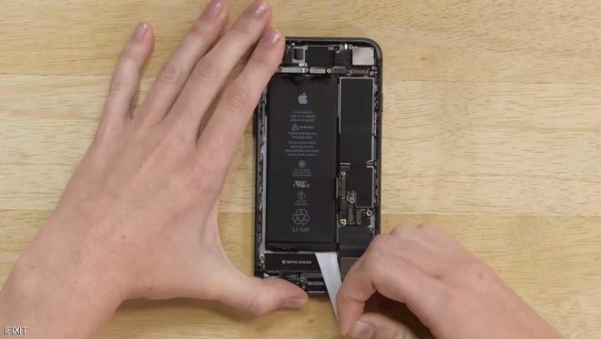 ووفق ما ظهر بعد عملية تفكيك الجهاز، ظهر أن آيفون 8 يعتمد على بطارية “إيون الليثيوم” أصغر حجما مما كانت عليه في آيفون 7.