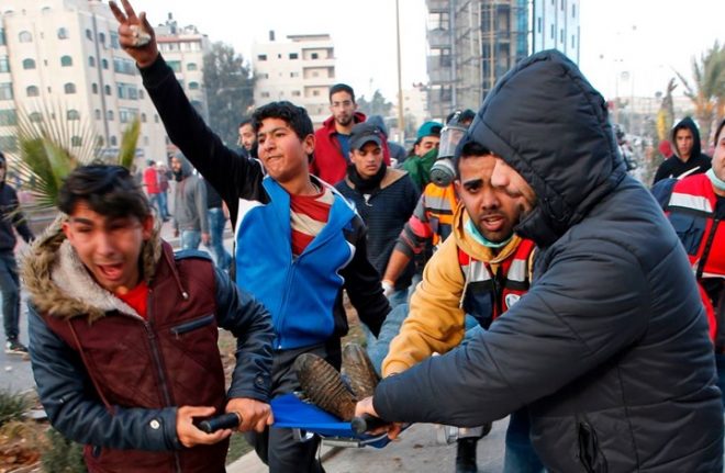 وشهدت مدن الضفة الغربية وقطاع غزة، مواجهات كبيرة مع قوات الاحتلال الإسرائيلي، أصيب خلالها وفق معطيات الهلال الأحمر ووزارة الصحة الفلسطينية، أكثر من 100 فلسطيني، كما شهدت مدن القطاع مسيرات جماهيرية ليلة حاشدة الخميس، عبر خلالها المتظاهرون عن غضبهم ورفضهم لقرار ترامب.