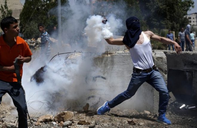وأطلق الاحتلال عشرات القنابل الغازية على المواطنين، وأعيرة نارية، ورد الشبان بالحجارة.