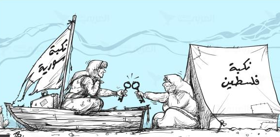 مع أن الاثنتين لا تخلوان من نقاط تشابه، باتت معروفة. أهمها: أن سورية بلد عربي مثل فلسطين. وهذه ليست أقل النقاط أهمية. فإذا نظرتَ إلى اللوحة بمجملها، يمكنك القول إن ما يتعرّض له شعباهما مترابط مع مصائر العرب جميعاً: المحرومين من تقرير وجهة حياتهم، والغارقين في سراب تلاعب الكبار والمتوسطين، وحتى الصغار، بمصيرهم. ومنها، أيضاً، أن طرد الفلسطينيين من أرضهم، وتمليكها للمهاجرين اليهود الآتين من بقع الدنيا، هو صنو طرد السوريين من سورية، وداخلها، لصالح “أصدقاء بشار” أو “مجاهدين”، جاءوا من أصقاع الدنيا لييصادروا ممتلكات السوريين وأرضهم، أو يشيدوا مرابع أمنية أو قواعد عسكرية محرَّمة عليهم. ومنها ثانياً، أن “تسامح” المجتمع الدولي مع إسرائيل، لا يختلف، إلا بالأسلوب ربما، عن سكوته على جرائم بشار تجاه شعبه.