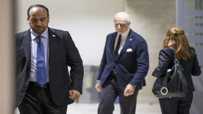 وكان أعلن رئيس الهيئة العليا للمفاوضات نصر الحريري، في مقابلة مع وكالة “رويترز” أمس، أن الجولة المقبلة من محادثات جنيف ستعقد في أواخر يناير/كانون الثاني الحالي، ربما بين 24 و26 يناير في فيينا. واستبعد أن تحضر المعارضة اجتماع سوتشي، موضحاً أنها لم تتلق دعوة بعد، ولم تتخذ قراراً نهائياً بشأن الحضور، مع تأكيده أن “الاتجاه العام هو عدم الذهاب إلى سوتشي، ورأيي الشخصي هو أنه بشكلها الحالي، من غير المقبول الذهاب إلى سوتشي”. وتبدأ هيئة التفاوض لقوى الثورة والمعارضة السورية الخميس اجتماعات في مقرها بالعاصمة السعودية الرياض للتحضير للاستحقاقات المقبلة، أبرزها الجولة التاسعة من مفاوضات جنيف، ومؤتمر سوتشي. وأكد مصدر في الهيئة لـ “صدى الشام” أن موفدا من المبعوث الاممي الى سوريا يصل الرياض الأربعاء لعقد اجتماع مع أعضاء الهيئة “تحضيري” للجولة المقبلة من مفاوضات مسار جنيف.