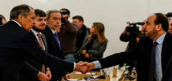 ونشرت هيئة التفاوض على “تويتر” ملخص اجتماع وفدها مع وزير الخارجية الروسي، مشيرة إلى أن الحريري أكد على “ضرورة الحل السياسي المنطلق من تطبيق بيان جنيف 1 والقرار الدولي 2254، والرامي لتحقيق الانتقال السياسي بعملية سياسية تقودها الأمم المتحدة في جنيف”.