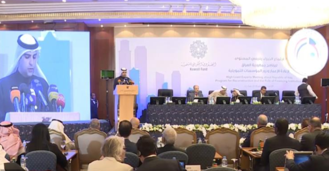 ويسعى المؤتمر -الذي ينظم من قبل الكويت والعراق والاتحاد الأوروبي والأمم المتحدة والبنك الدولي- للحصول على تعهدات من مانحين ومستثمرين لإعادة إعمار منازل ومدارس ومستشفيات العراق وبناه التحتية والاقتصادية.
