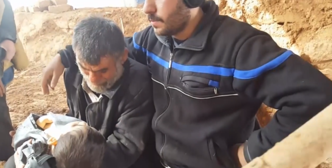 أظهر مقطع للفيديو نشره ناشطون سوريون بكاء وحرقة وألما بين أفراد أسرة طفل لقي حتفه جراء قصف طائرات النظام على الغوطة الشرقية في ريف دمشق.