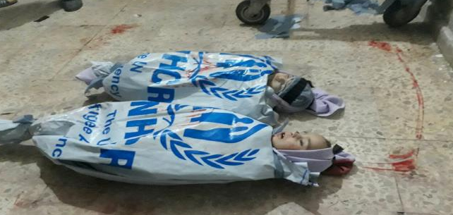 انتشرت صور جثامين أطفال في الغوطة الشرقية، تلفها أكفان عليها شعار المفوضية السامية للأمم المتحدة لشؤون اللاجئين، وذلك احتجاجاً على موقف الأمم المتحدة حيال ما يجري.