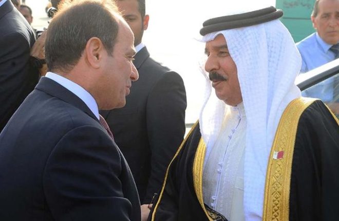 وأكد العاهل البحريني أنه لن يتوانى لحظة واحدة في المشاركة في الاستثمارات والمشروعات الكبرى التي من شأنها تحقيق التنمية في سيناء، مضيفا أن “استقرار وتطهير سيناء بمنزلة أمان لنا جميعا… قمت بتجديد بيتي في شرم الشيخ”.