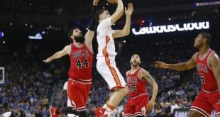 احتفل كلاي طومسون بعيد ميلاده 27 بإحراز ست رميات ثلاثية و28 نقطة قاد بها فريقه جولدن ستيت وريورز للفوز 123-92 على ضيفه شيكاجو بولز في دوري كرة السلة الأمريكي للمحترفين يوم الأربعاء. وأسهم كيفن دورانت في فوز بطل موسم 2015 بإحراز 22 نقطة والسيطرة على عشر كرات مرتدة وتمرير سبع …