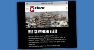 تحت عنوان “إننا صامتون اليوم”، توقف موقع “شتيرن” الألماني على الشبكة العنكبوتية، عن النشر طوال يوم أمس الجمعة 7 أكتوبر/تشرين الأول، احتجاجاً على الأوضاع التي آلت إليها مدينة حلب. وفي بيان للموقع، جاء فيه: “نحن الصحافيين، ينبغي ألا نكون عاجزين عن الكلام. ينبغي أن نرصد ما يحدث، أن ننقل الأخبار …